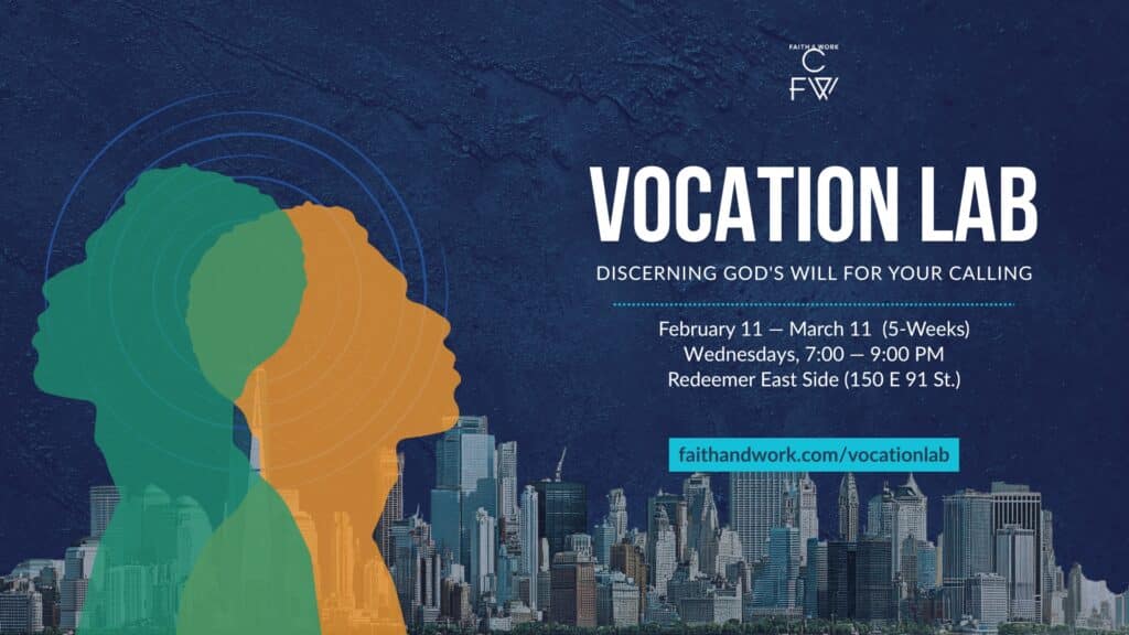 The Center for Faith & Work invites you to join Vocation Lab, an interactive 5-week course designed to help you discern God’s will for your calling. If you’ve ever found yourself asking, “What does God want me to do with my gifts, opportunities, and season of life?” this course is for you.